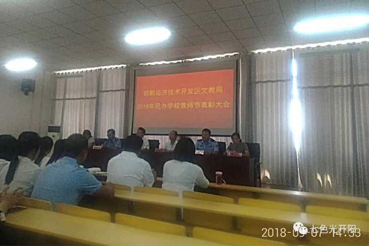 今天下午2:30,邯郸经济技术开发区文教局2018年民办学校教师节表彰大会在局会议室隆重举行,七色光开阳中学等10所学校被授予“2018年度优秀民办学校”荣誉称号。