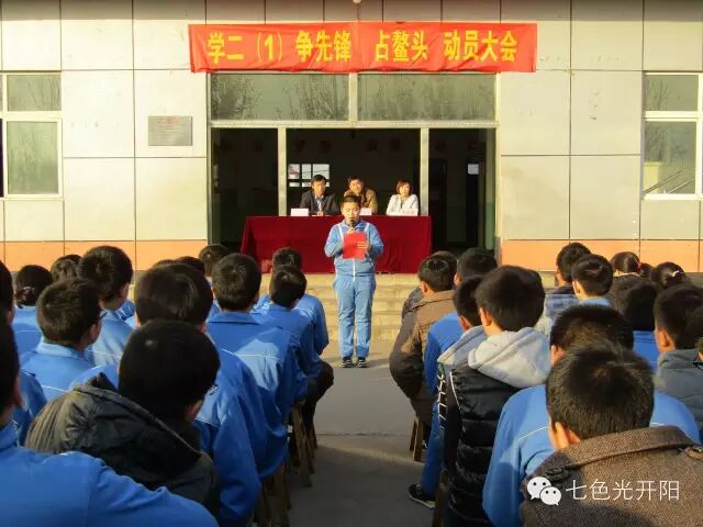 为营造积极浓厚的学习氛围,形成生动活泼、健康向上的学习风气,创造良好的学习环境。邯郸市七色光第一中学“学二(1)﹒争先锋﹒占鳌头”动员大会于2015年12月3日下午在学校操场隆重举行。