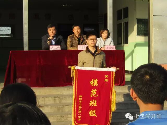 ↓↓↓七色光中学为模范班级授锦旗↓↓↓