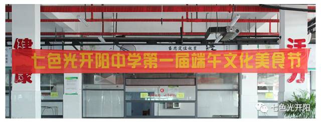 下午2:30,由开阳中学和七色光餐饮合作单位——鸿金鹏饮食文化有限公司携手举办的“七色光开阳中学第一届端午文化美食节”隆重开幕。七色光教育集团董事长魏思旺、总校长刘洋与全体师生一起共度传统佳节,执行校长袁丹平为本次文化美食节开幕式致辞,拉开了活动欢乐的序幕。