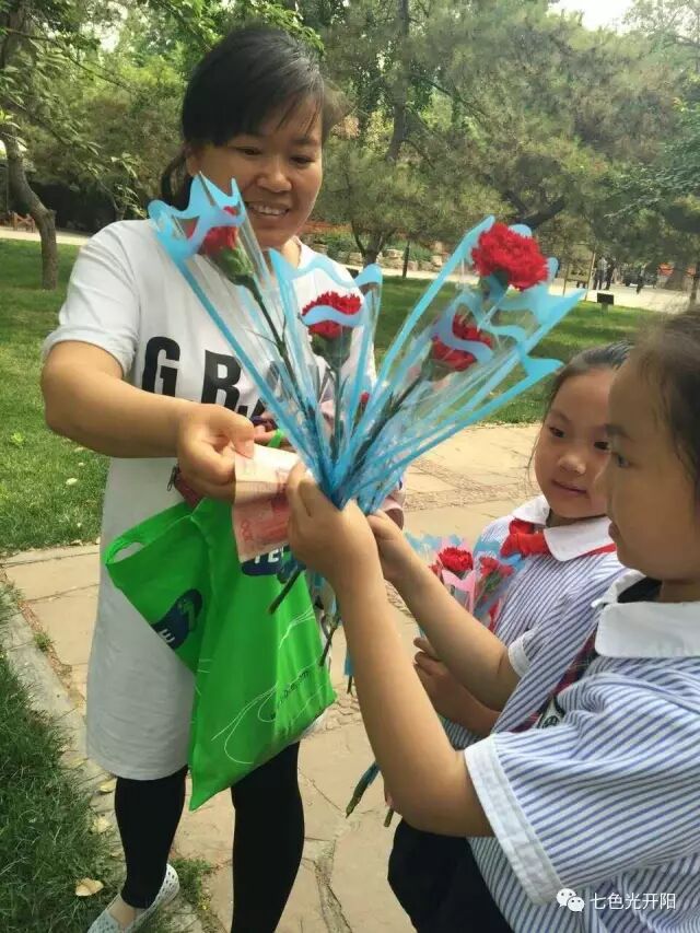 5月14号是母亲节。借着这一表达浓浓爱心的节日,七色光第一小学举办了一场有意义的鲜花义卖活动。