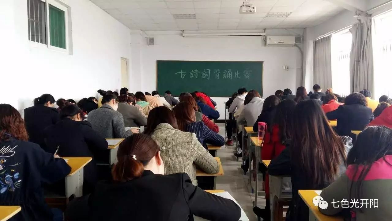 4月5日中午, 全校一线教师开展了古诗词竞赛。比赛中,每一位老师都全力以赴、聚精会神地审题作答,一个个认真的模样仿佛又回到了学生时代。经过50分钟的奋笔疾书,老师们一个个交上了"满意"的答卷。走出赛场的老师快乐地讨论着比赛的内容。有人笑称,经过这次考试,我们都有信心参加中央电视台的《中国诗词大会》节目了。王建芬校长表示,学校希望通过举办背诵、笔试、手抄报等多种形式的活动,让师生丰富内心世界,培养浪漫情怀,更加热爱中华传统文化,同时提升整个教师团队的文化素养,为更好地教书育人打下牢固的知识基础。