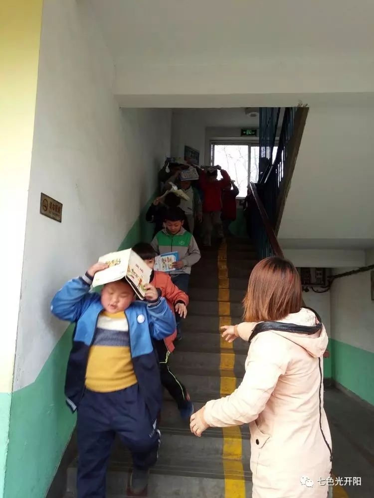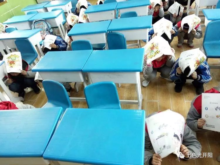 七色光开阳第三小学组织抗震疏散演练