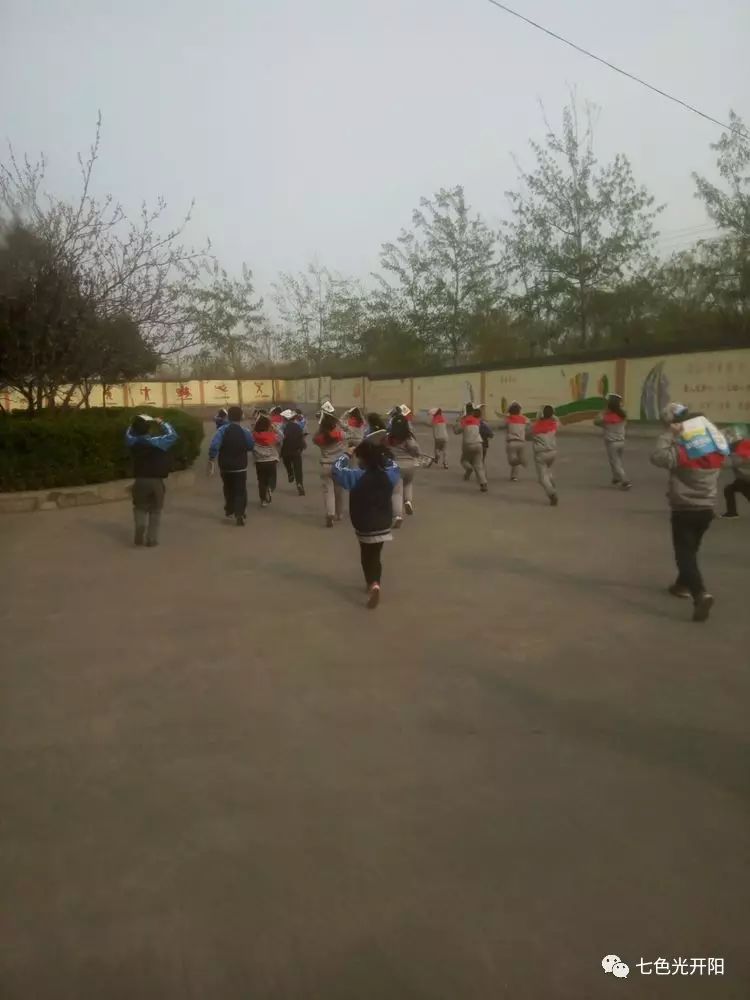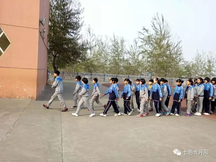 3月31日下午,七色光开阳第三小学开展了一次抗震演习活动。