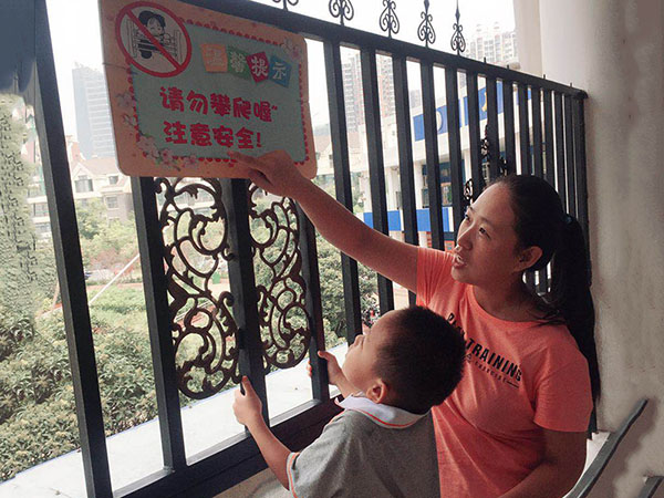 教育幼儿和小朋友之间团结有爱,不能互相追打,不做爬栏杆等危险动作。