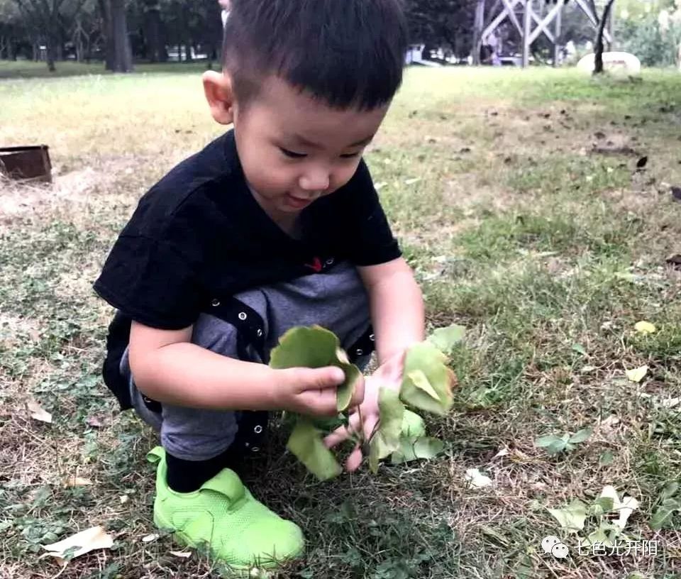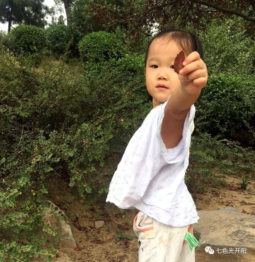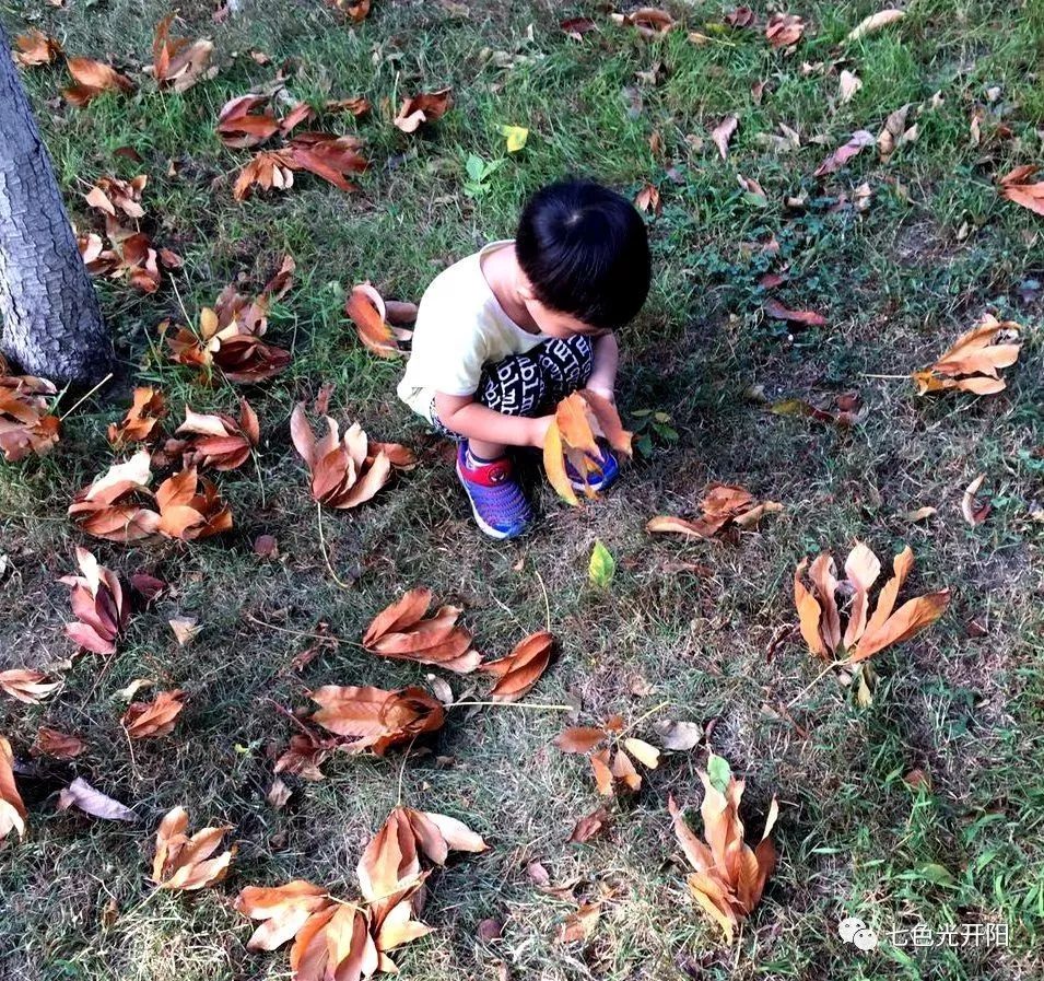 ▲“这个落叶是红色的!”