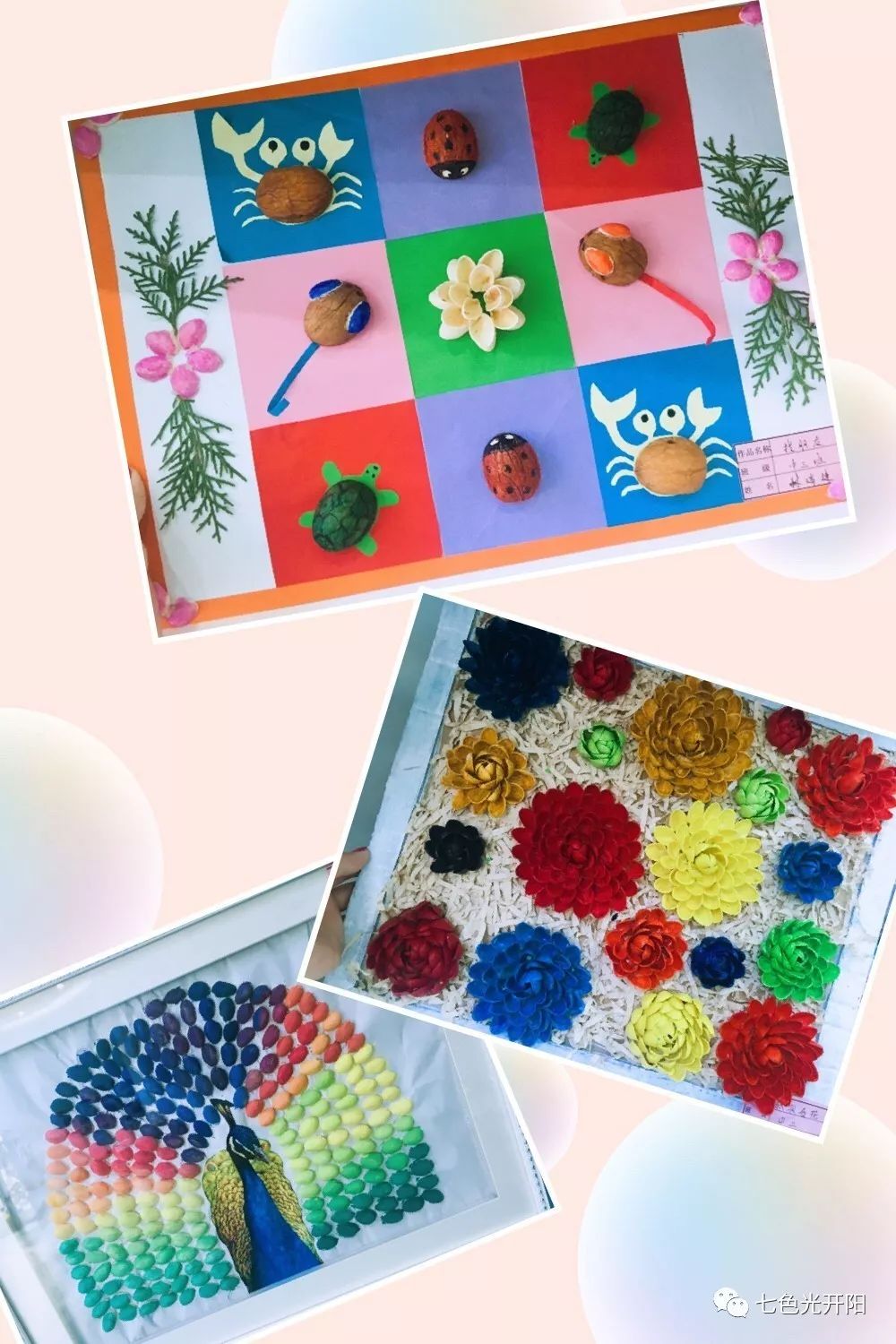 自然界是个大课堂,走进大自然,会让孩子们开阔眼界,增长见识,提高动手能力,更加热爱大自然,增进家长与幼儿之间的感情;同时,通过这些独具匠心的作品,我们也看到七色光开阳孩子和家长们的奇思妙想和巧夺天工,让我们为他们非凡的创意和才艺点赞吧!