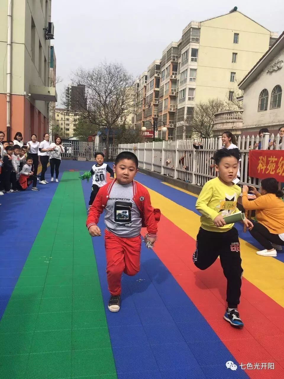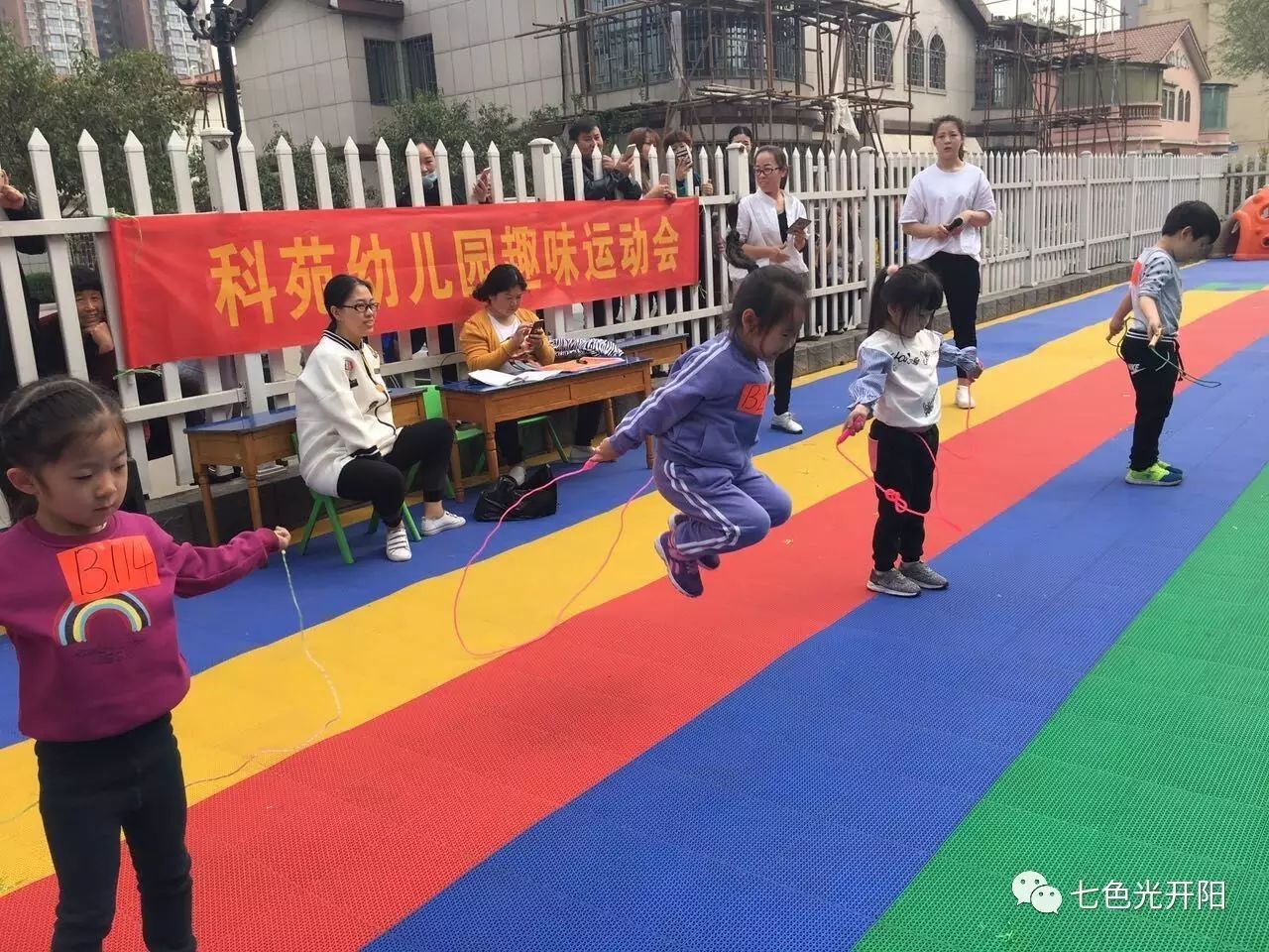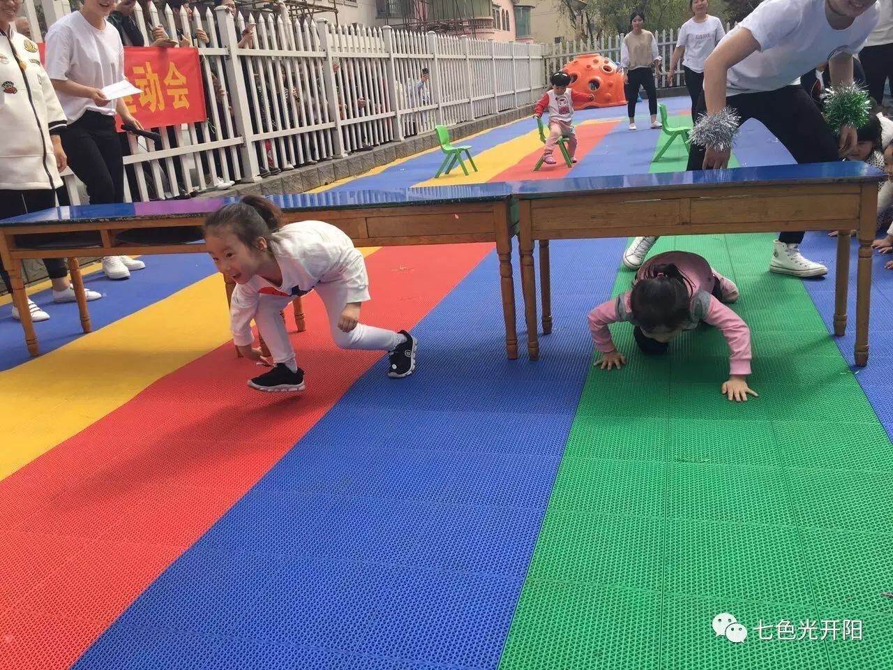围绕着“我运动、我健康、我快乐”的主题,比赛设置了接力赛、跳远、跳绳、障碍物、百米冲刺、运球、毛毛虫、拨河等运动项目。