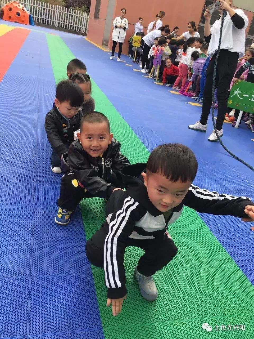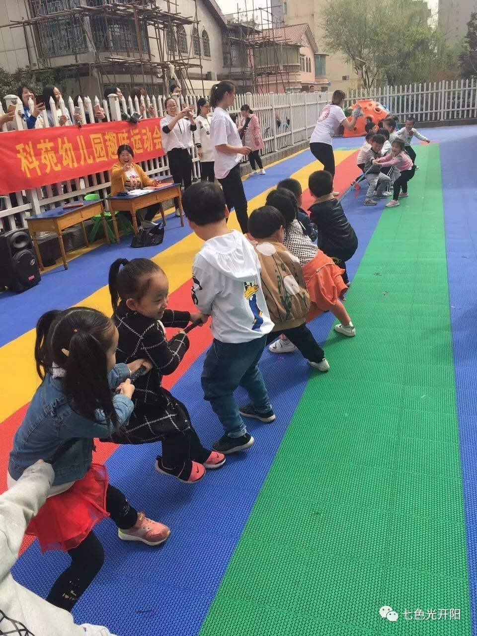 一个个比赛项目丰富有趣,激动人心。孩子们兴致盎然,积极参与,快乐和认真写在脸上,老师拉拉队的呐喊助威和拔河比赛更是将活动的气氛推至高潮。