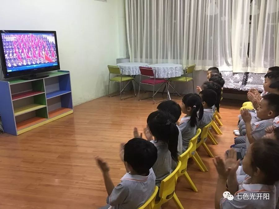欣赏阅兵仪式时,孩子们被我国解放军战士威武的雄姿、恢宏的气势所震撼,一个个自发地鼓起掌来。