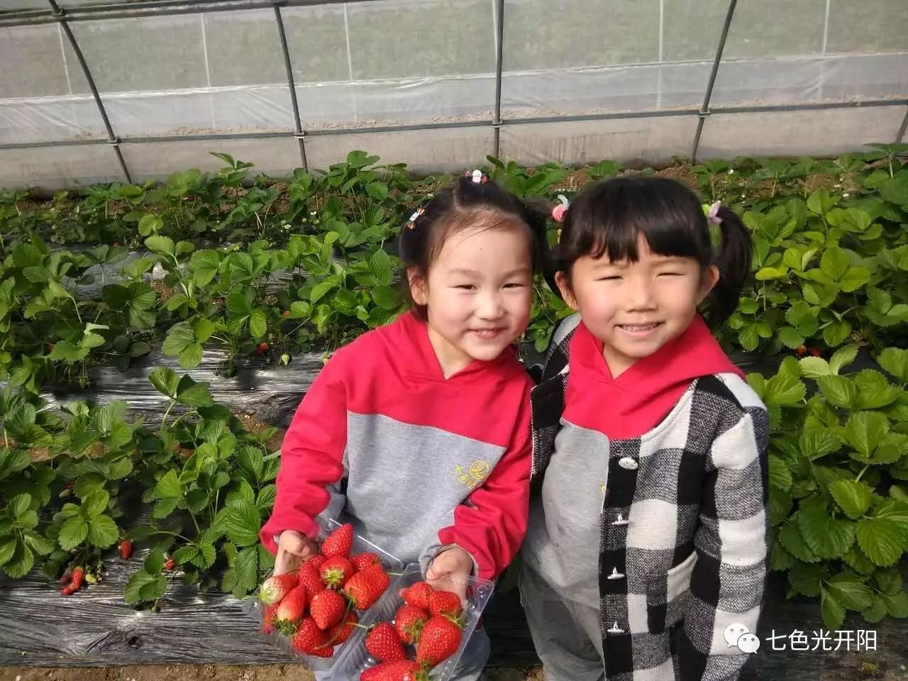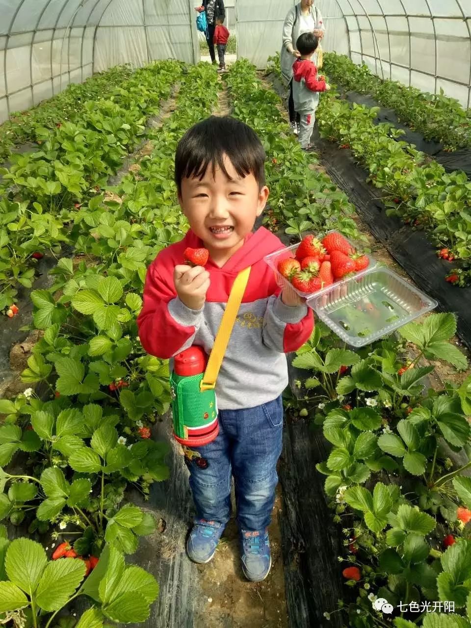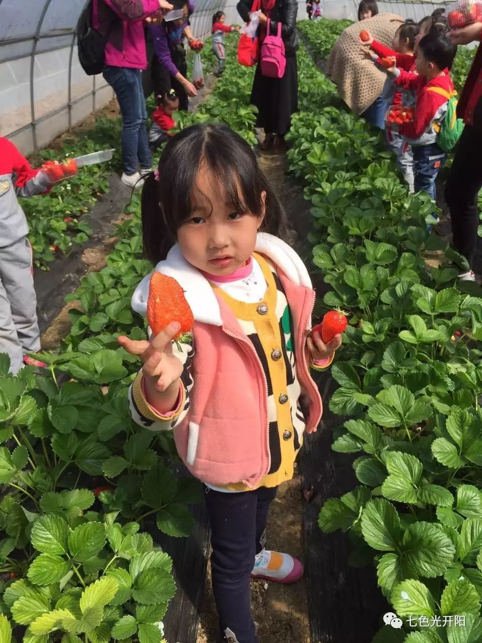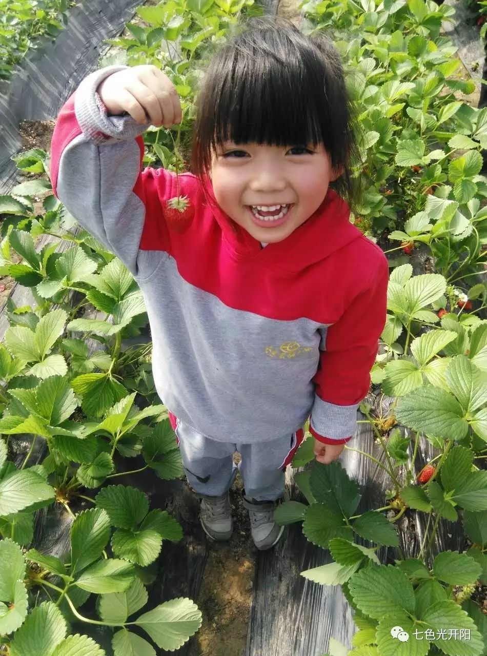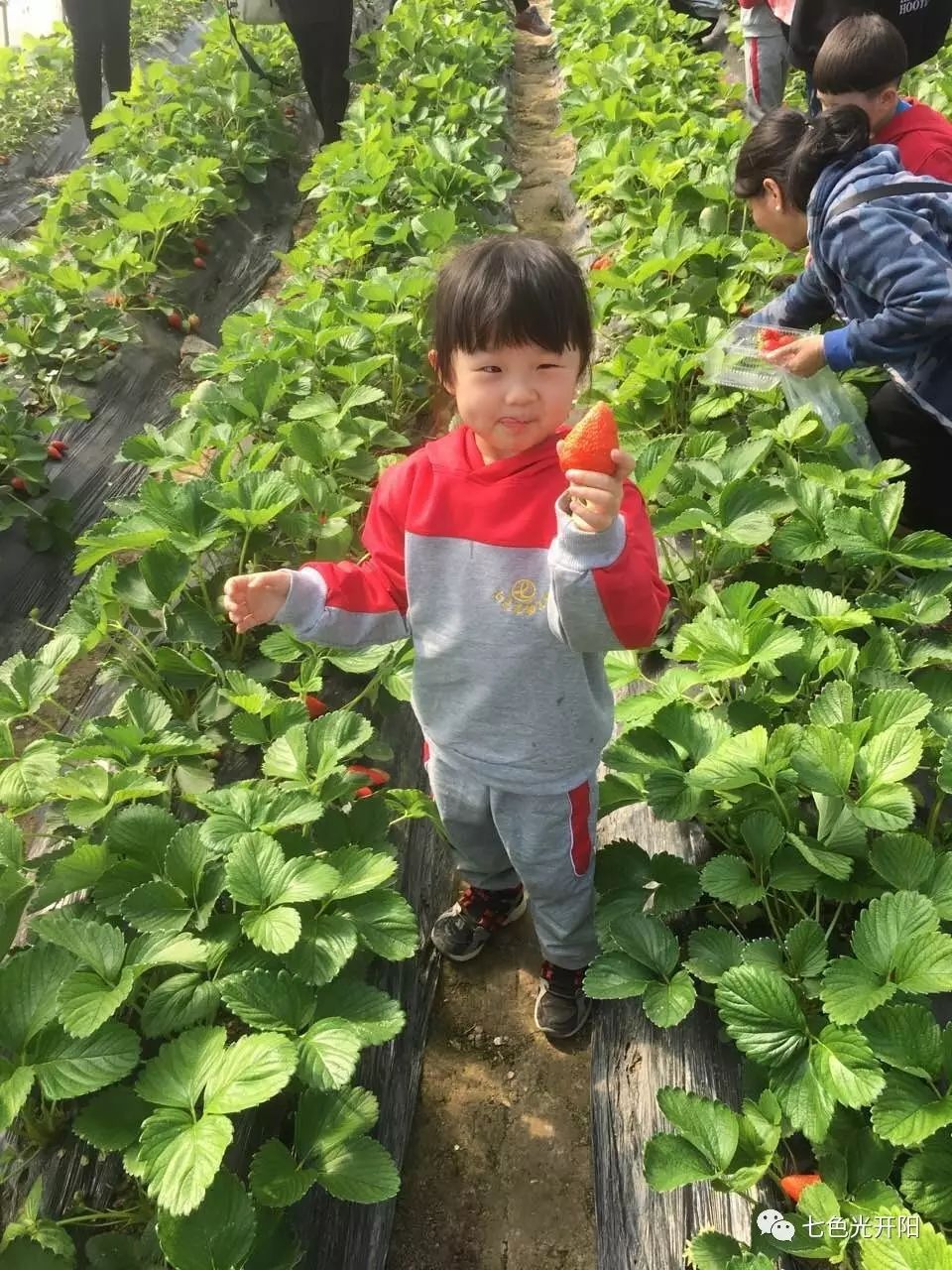 到了!到了!一下车,阳光明媚,油菜花黄,孩子们在家长的带领下,兴奋地走进采摘园,开始了快乐的草莓采摘之旅。孩子们穿梭在大棚内,仔细地寻找着最红最大的草莓。草莓有的是深红色的,像一个个的小灯笼;有的青里透红,像孩子们害羞的小脸蛋。整个大棚内弥漫着甜甜的草莓味。在这娇嫩欲滴的草莓丛中,孩子们不时地发出“原来草莓是生长在地上的!”“妈妈,你看我摘了一个大草莓!”等惊喜的欢笑声。