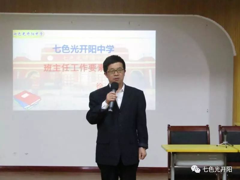 4月20日晚,七色光开阳中学学术报告厅灯火辉煌,来自学校各部门的负责人和班主任共五十余人一起聆听了开阳中学优秀班主任徐宁老师主讲的精彩报告会。执行校长袁丹平主持了会议。